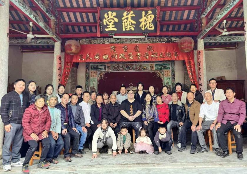 时光荏苒,时隔近20年后的2025年大年初三,王洋肩负著父亲的临终嘱託和强烈的寻亲使命,跨越山海,一路辗转抵达普寧。在普寧市洪阳镇坵塘村古老的宗祠里,王洋神色庄重,目光虔诚。普寧的亲人们簇拥在旁,眼神中满是温情和喜悦。此刻,王洋心潮澎湃,他终於完成了父亲的遗愿,也找到了自己的血脉根源。