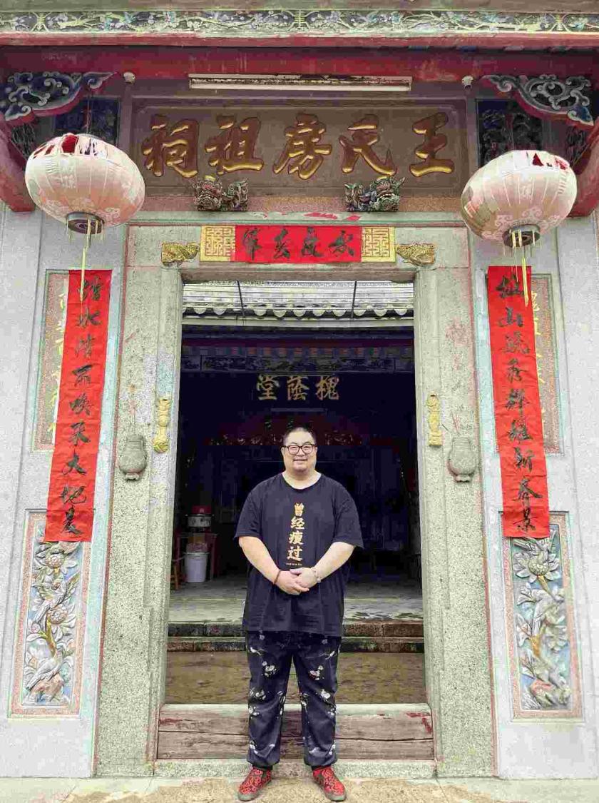 王洋在王氏房祖祠前留影